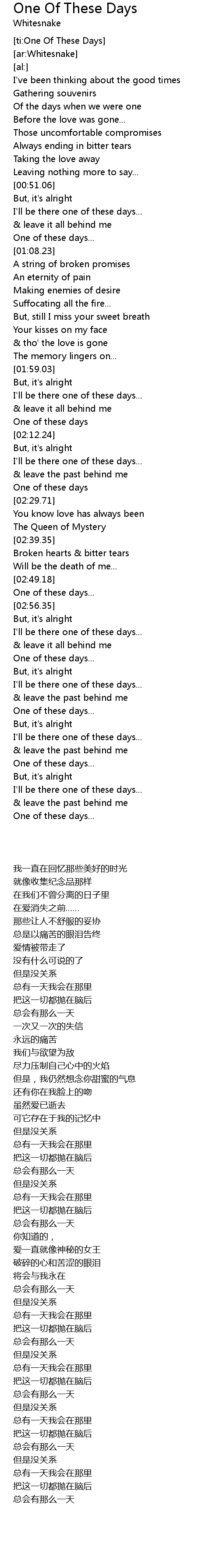[ti:One Of These Days] |