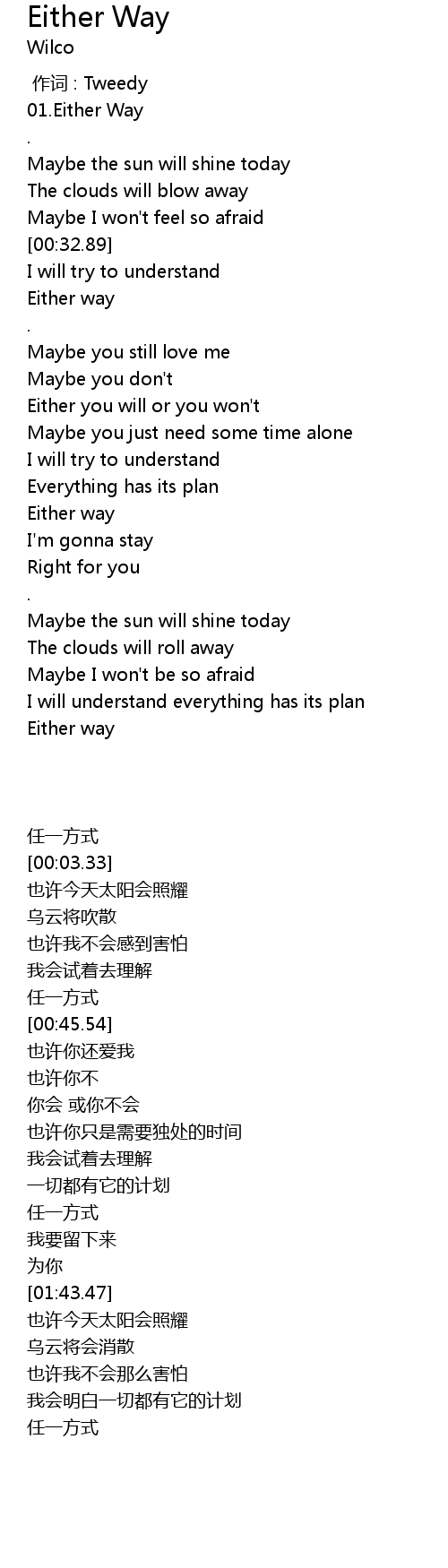 | [00:23.26] | Maybe I won' t feel so afraid |