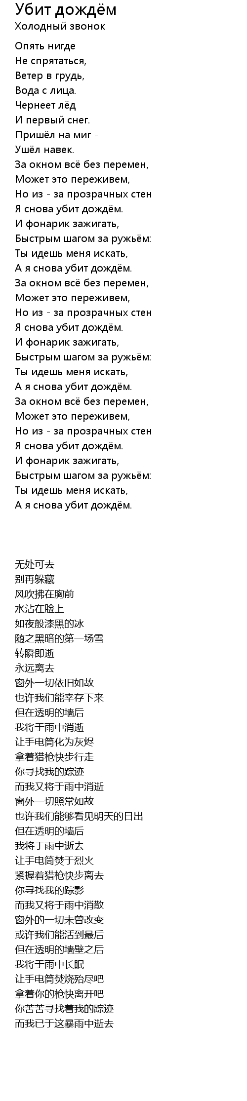 Я снова убит дождём. |