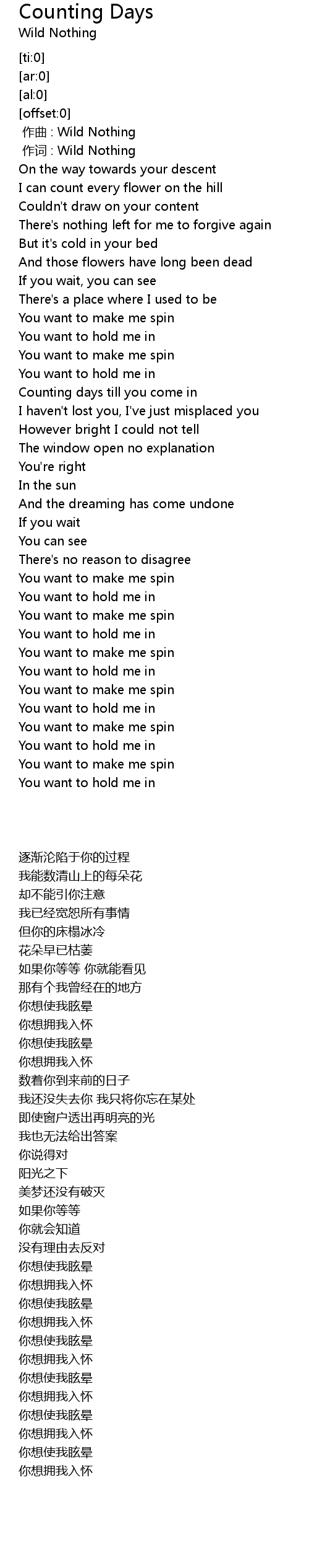 | [00:01.00] | 作词 : Wild Nothing |