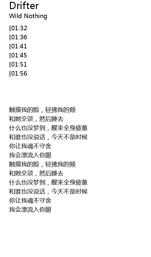 | [00:46][01:41] | Dream of nothing,wake up tired |