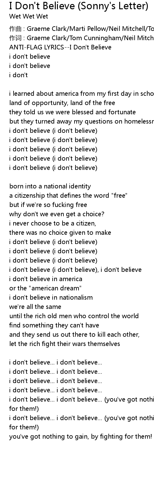 | ANTI-FLAG LYRICS--I Don't Believe | |