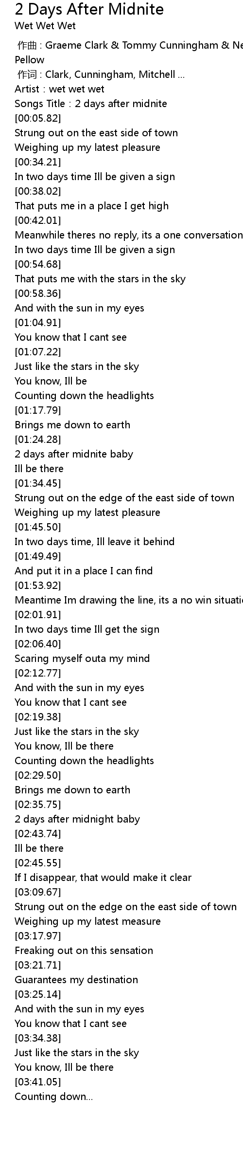 | [00:03.08] | Songs Title: 2 days after midnite |