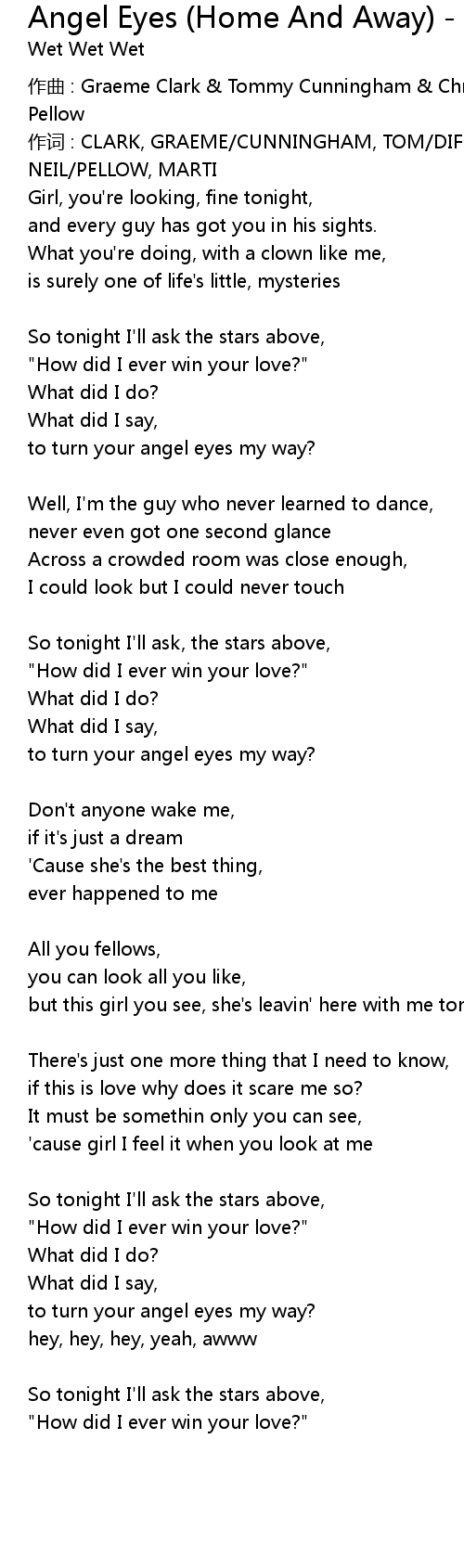 | Song | Angel Eyes (Home And Away) - Short Version |