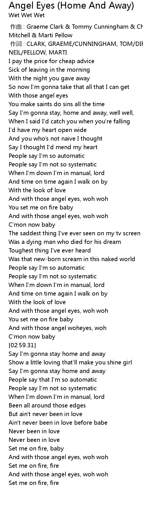 | [00:45.85] | Say I'm gonna stay, home and away, well well, |