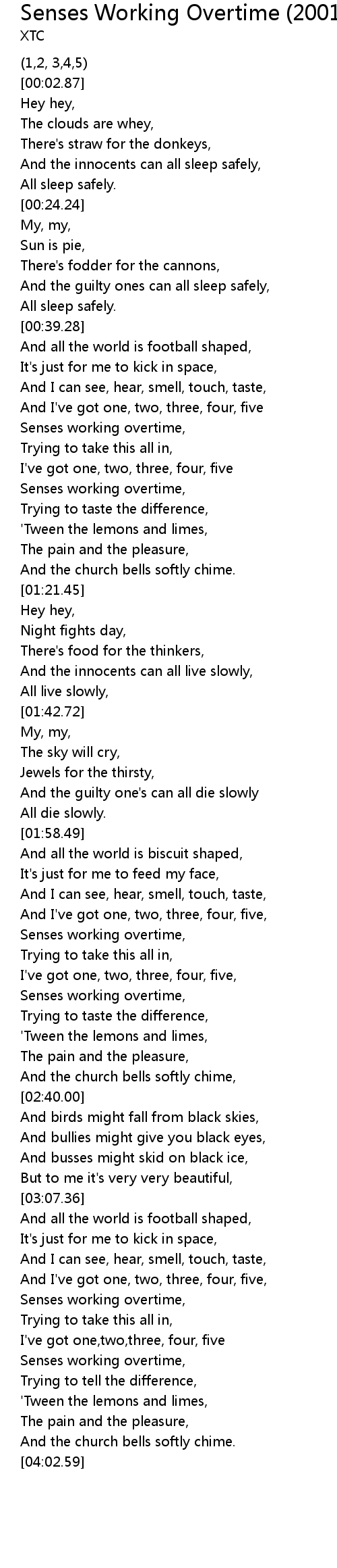 Senses working overtime, |