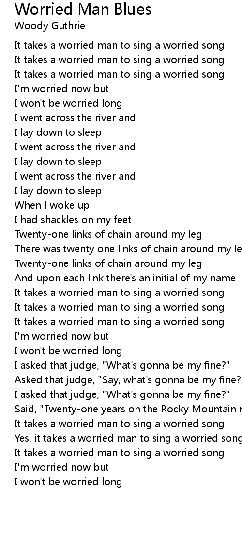 Yes, it takes a worried man to sing a worried song |