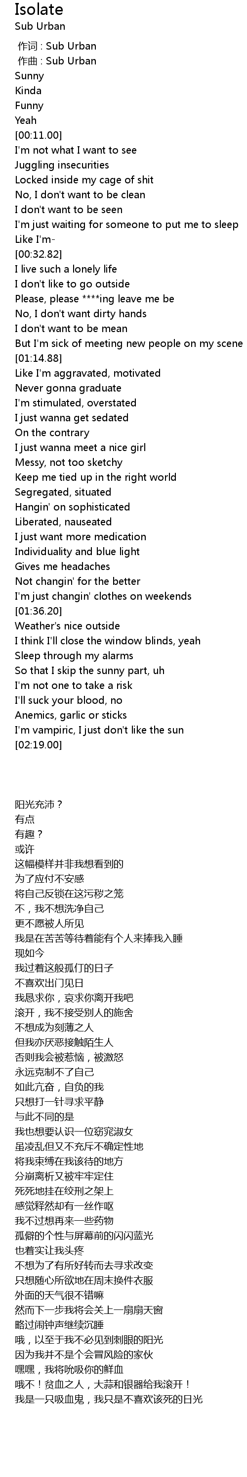 | [00:01.00] | zuò qǔ : Sub Urban |