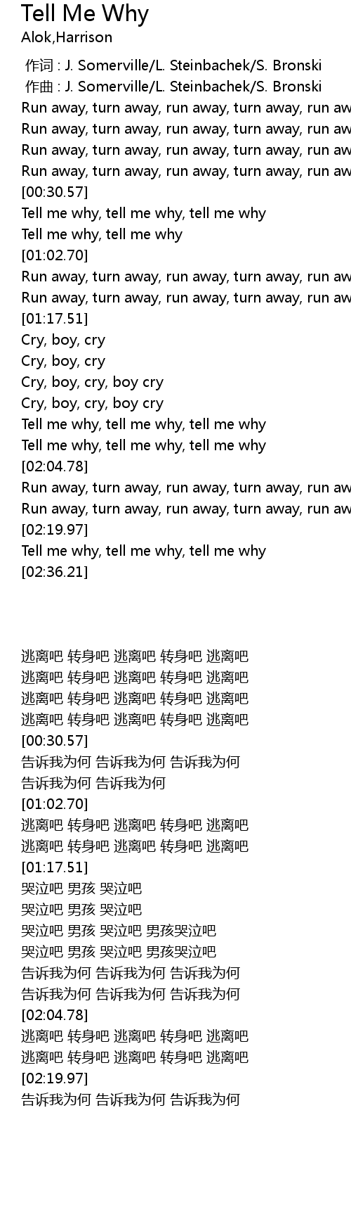 | [00:32.04] | Tell me why, tell me why, tell me why |