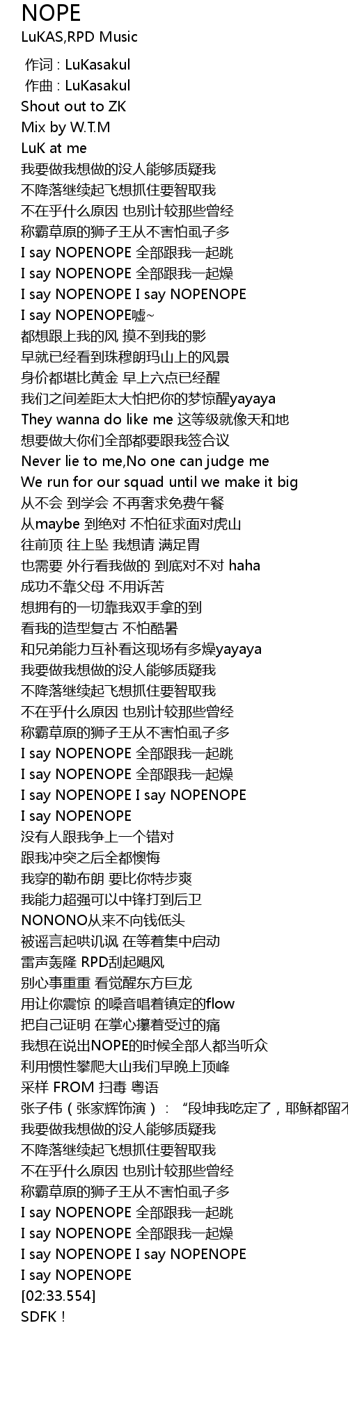| [02:01.300] | 我想在说出NOPE的时候全部人都当听众 |