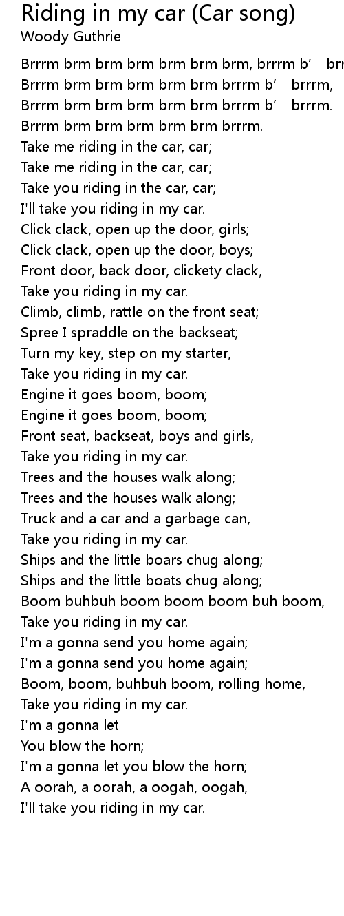 | Song | Riding in my car (Car song) |