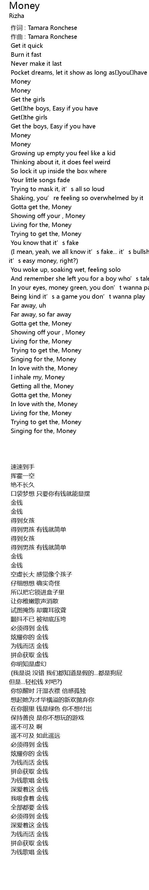 | [00:59.40] | Gotta get the, Money |
