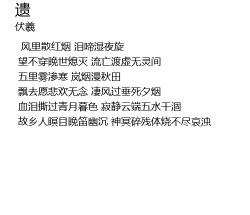 | 故乡人瞑目晚笛幽沉 神冥碎残体烧不尽哀浊 |