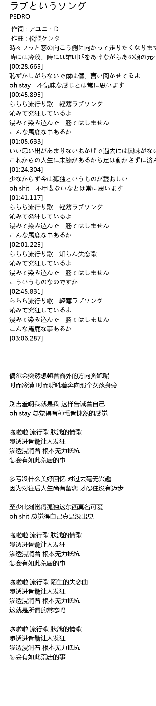 | [02:46.179] | ららら流行り歌 軽薄ラブソング |