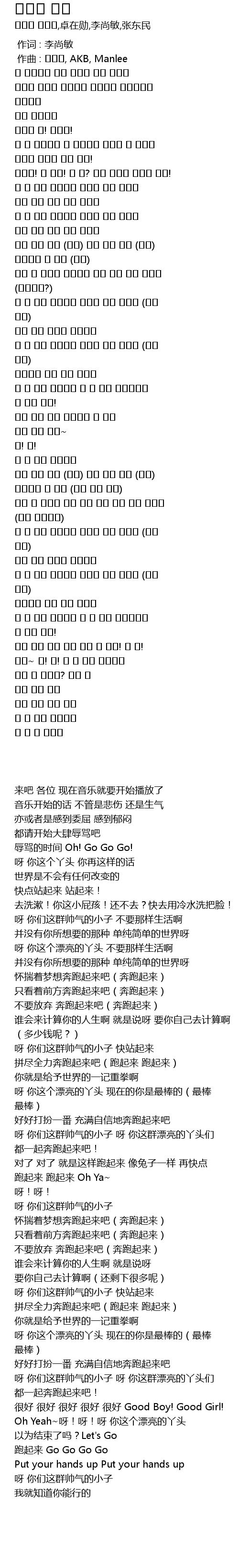 야 이 멋진 새끼들아 일어나 힘껏 뛰어라 (뛰어 뛰어) |