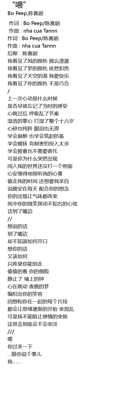| [00:00.000] | 作词 : Bo Peep/陈喜剧 |