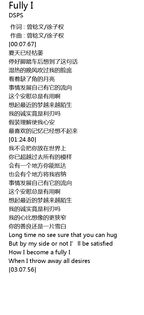 | [00:00.00] | 作词 : 曾稔文/徐子权 |