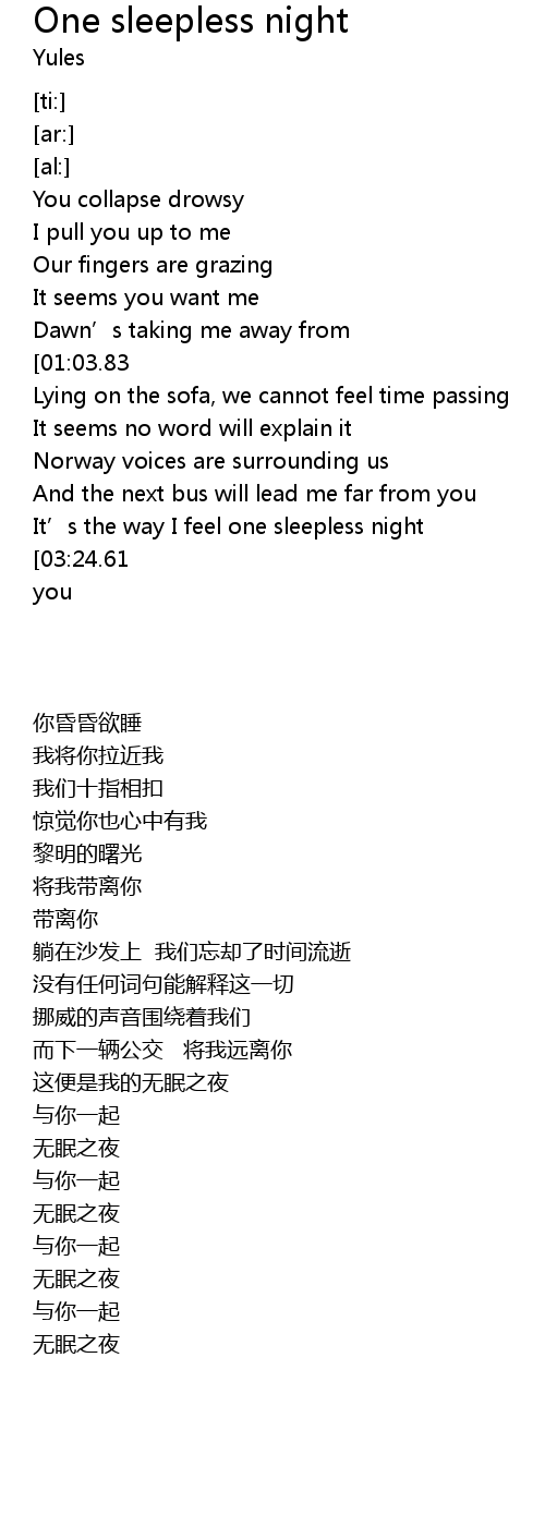 | Song | One sleepless night |