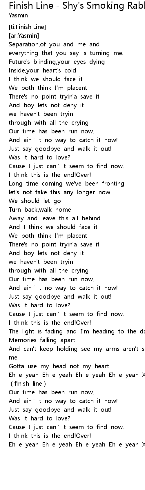 | Song | Finish Line - Shy's Smoking Rabbit Remix |