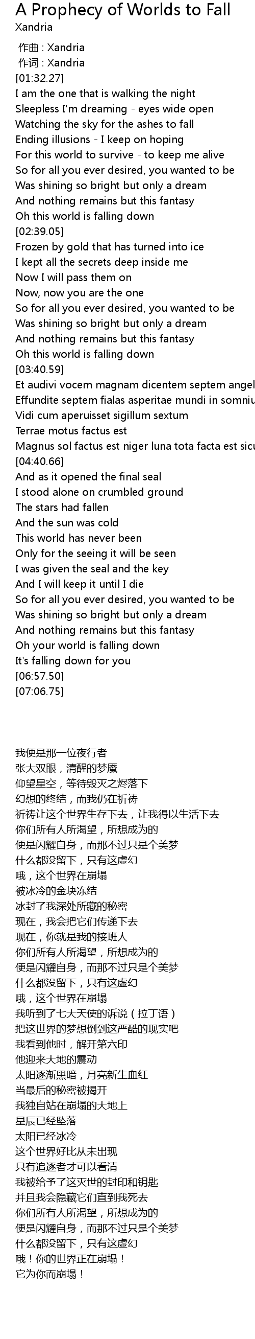 | [00:01.00] | 作词 : Xandria |