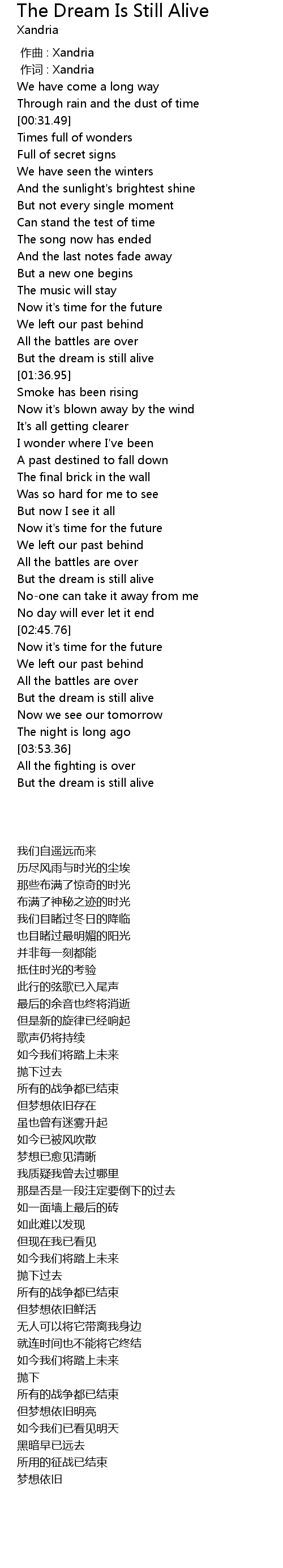 | [00:00.00] | zuo qu : Xandria |