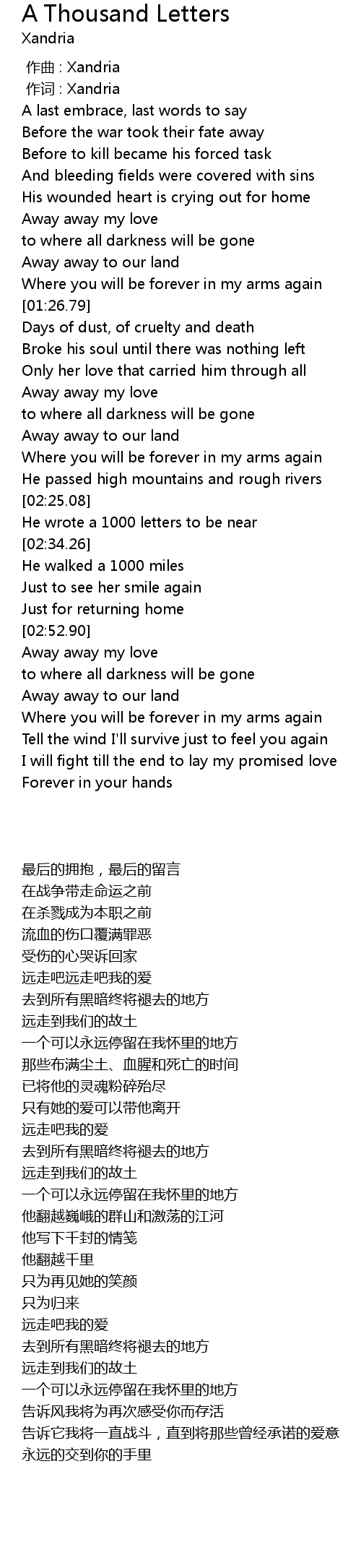 | [02:27.14] | He wrote a 1000 letters to be near |