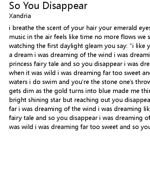 i breathe the scent of your hair your emerald eyes are closed there's still some music in the air feels like time no more flows we sit, you're in my arms watching the first daylight gleam you say: "i like your warmth" a voice just in a dream i was dreaming of the wind i was dreaming like a child a prince and princess fairy tale and so you disappear i was dreaming of the fire of the time when it was wild i was dreaming far too sweet and so you disappear in chaos waters i do swim and you're the stone one's thrown into a frail creature now gets dim as the gold turns into blue made me think you were so damn near like a bright shining star but reaching out you disappeared for real you are so very far i was dreaming of the wind i was dreaming like a child a prince and princess fairy tale and so you disappear i was dreaming of the fire of the time when it was wild i was dreaming far too sweet and so you disappear |