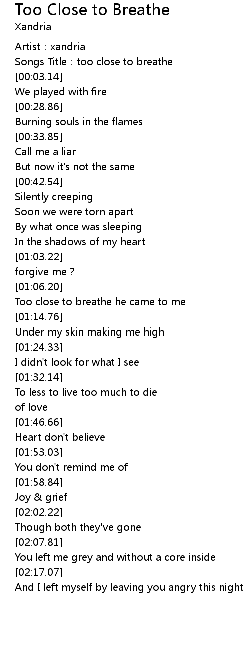| [00:02.26] | Songs Title: too close to breathe |
