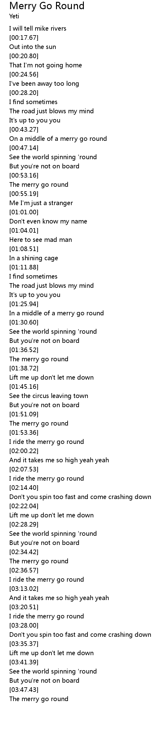 Merry Go Round Lyrics