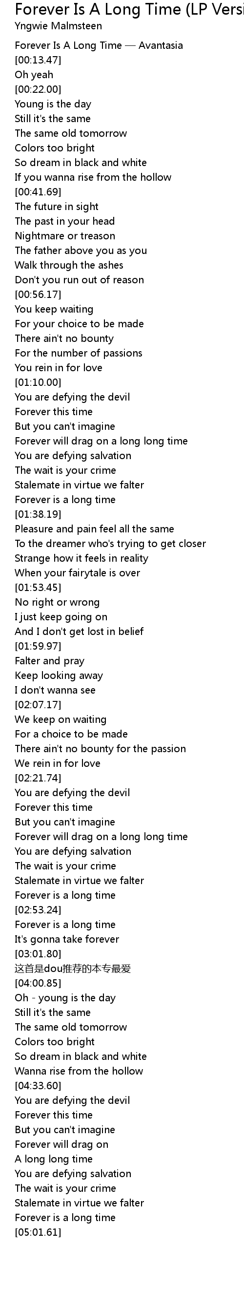 | [00:06.19] | Forever Is A Long Time — Avantasia |