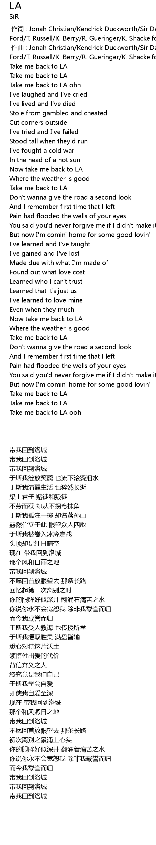 | [00:00.00] | 作词 : Jonah Christian/Kendrick Duckworth/Sir Darryl Farris/V. Ford/T. Russell/K. Berry/R. Gueringer/K. Shackelford |