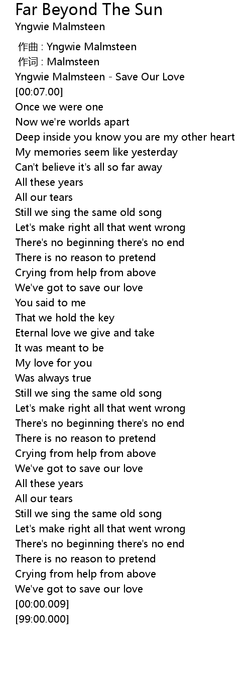 | [00:02.00] | Yngwie Malmsteen Save Our Love |