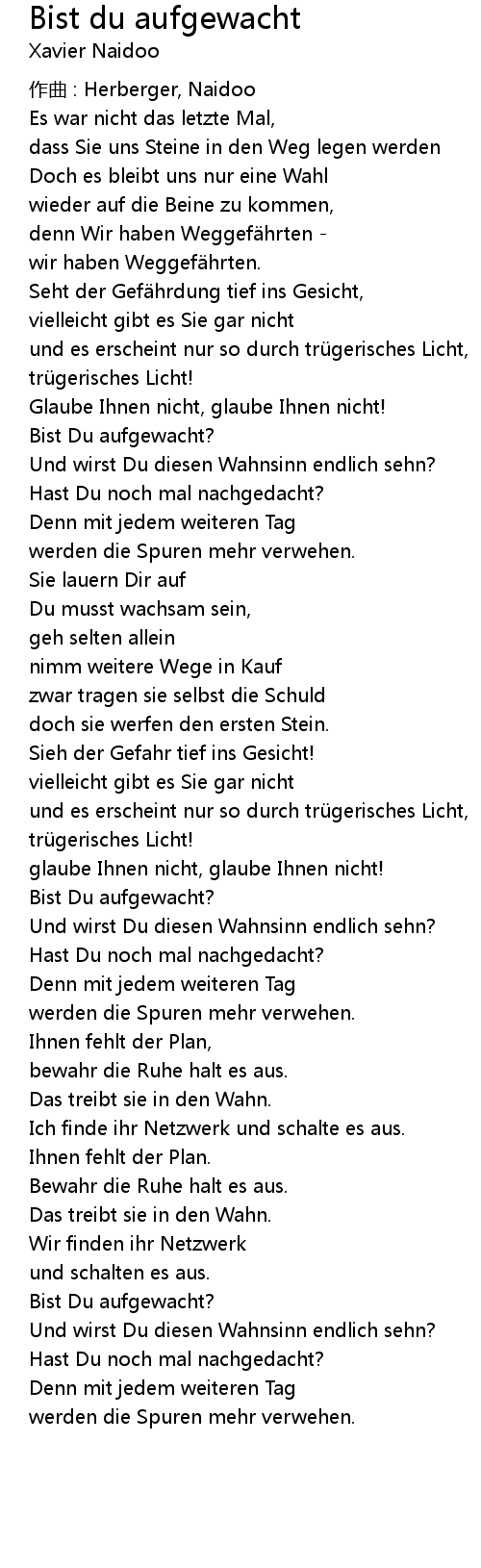| Und wirst Du diesen Wahnsinn endlich sehn? | |