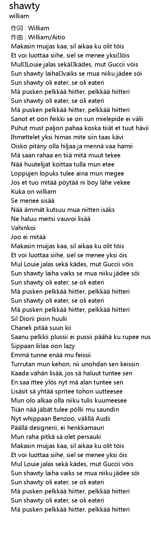 | [02:41.842] | Sun shawty oli eater, se oli eateri |