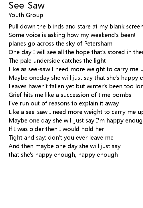 Like a see-saw I need more weight to carry me up |