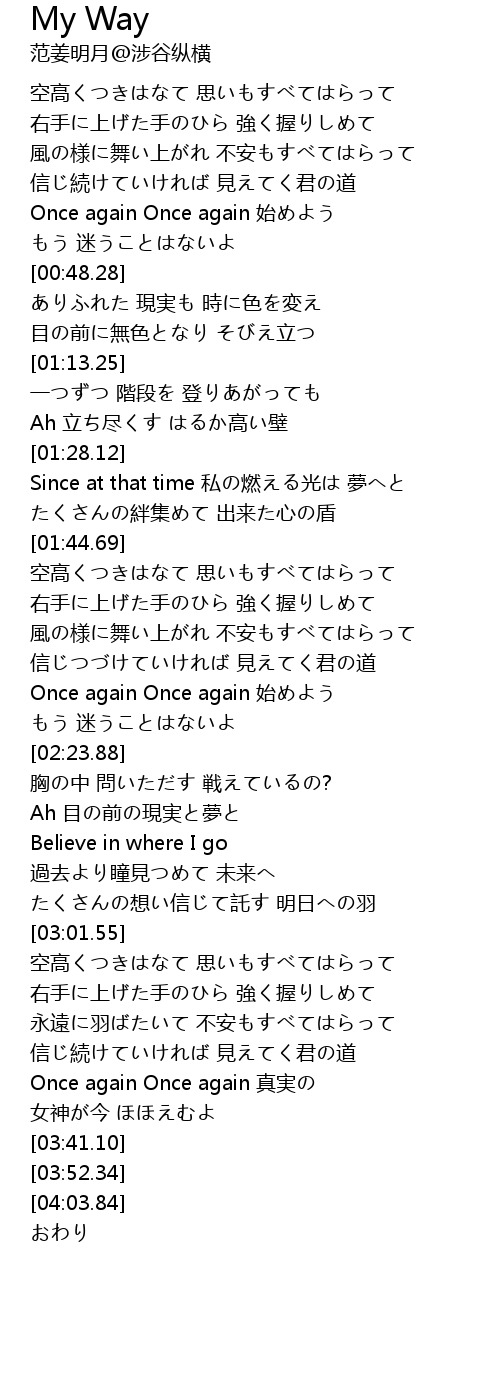 | [01:20.94] | Ah 立ち尽くす はるか高い壁 |