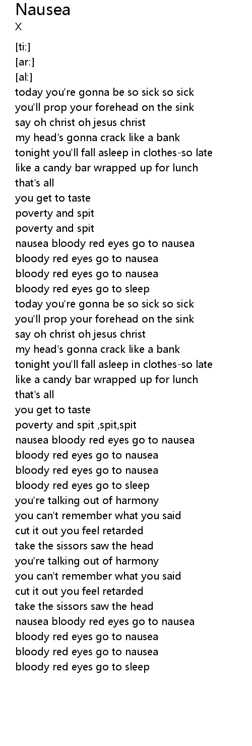 nausea bloody red eyes go to nausea |