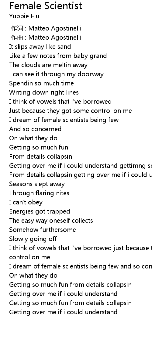 | [02:37.850] | I dream of female scientists being few and so concerned |