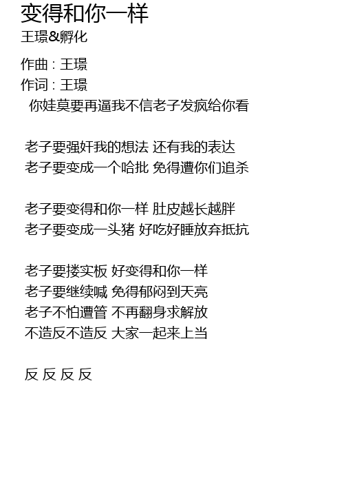 | lǎo zi yào biàn de hé nǐ yí yàng dù pí yuè cháng yuè pàng | |