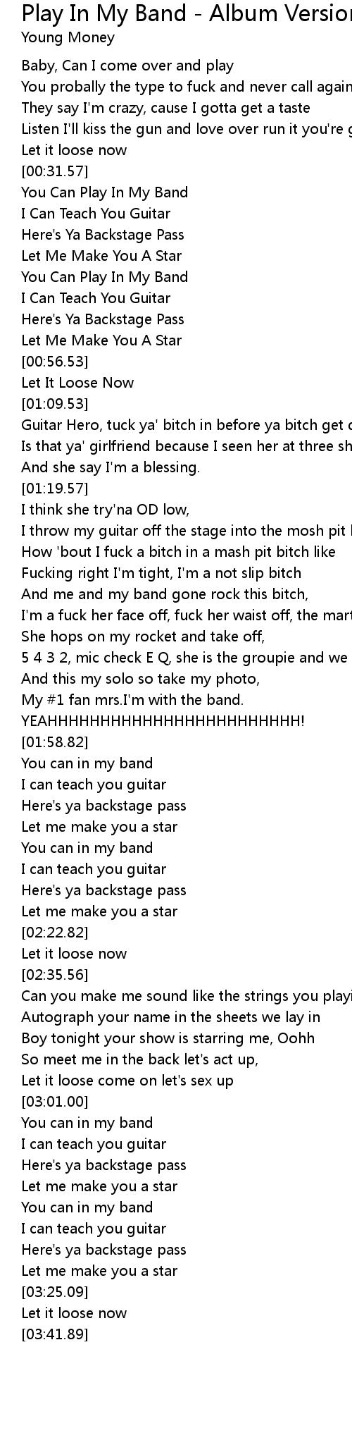 Play In My Band - Album Version (Explicit) Lyrics