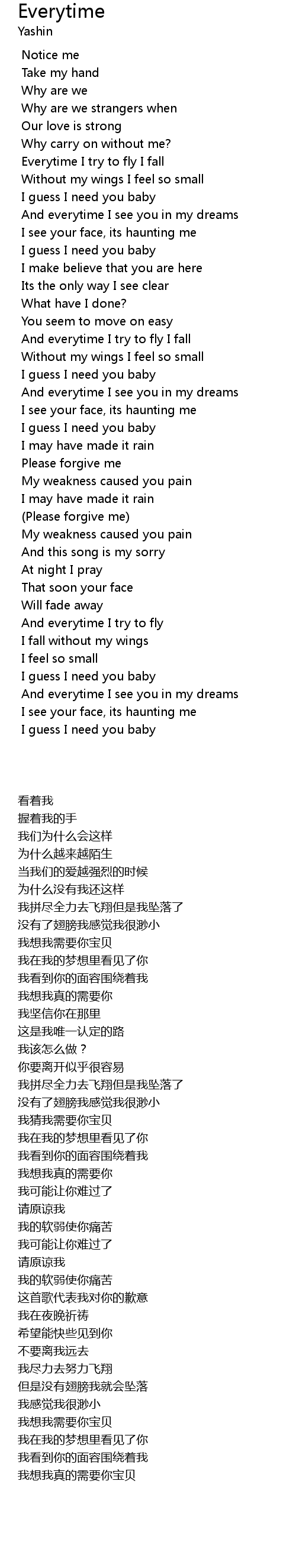 And everytime I try to fly I fall |