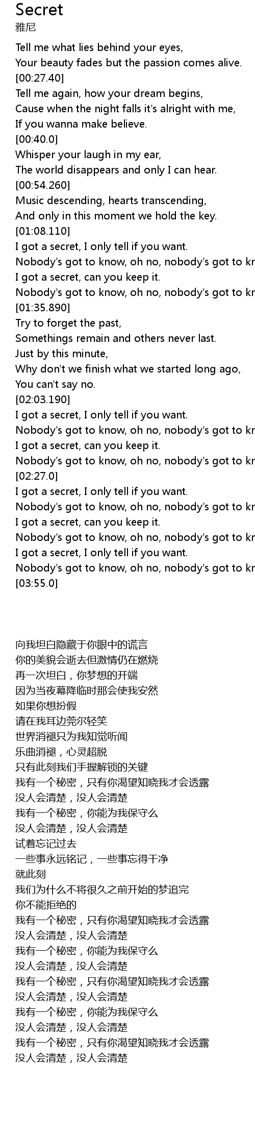 | [03:12.880] | I got a secret, I only tell if you want. |