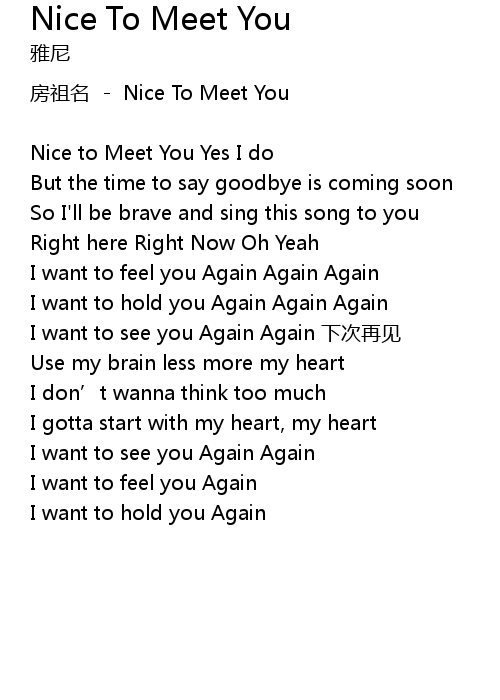 | Nice to Meet You Yes I do | |