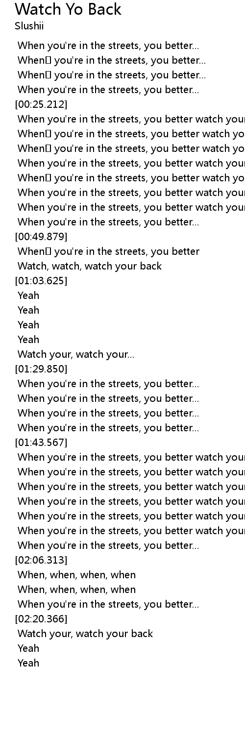 | [00:25.801] | When you're in the streets, you better watch your back |