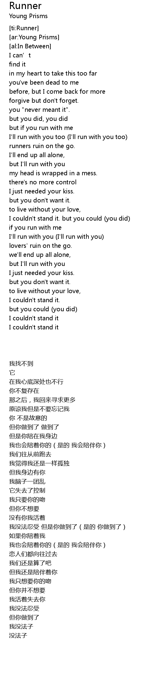 | [01:33.40] | I' ll run with you too I' ll run with you too |