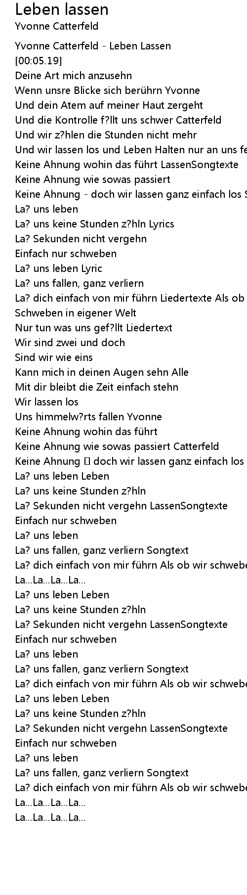 | [00:04.07] | Yvonne Catterfeld - Leben Lassen |