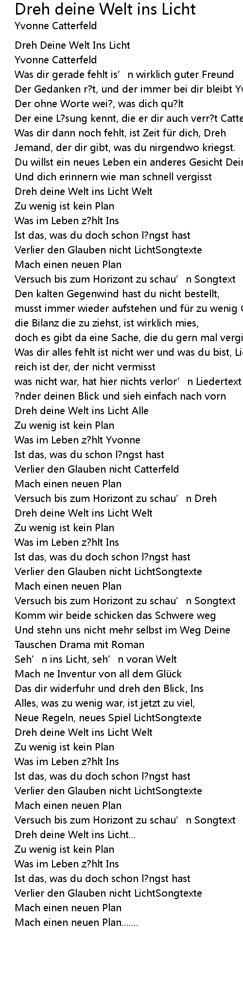 | [02:00.19] | Dreh deine Welt ins Licht Welt |