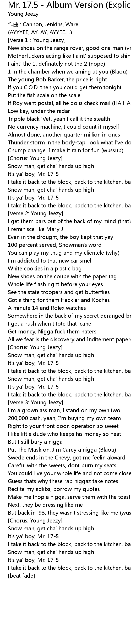 | Song | Mr. 17.5 - Album Version (Explicit) |