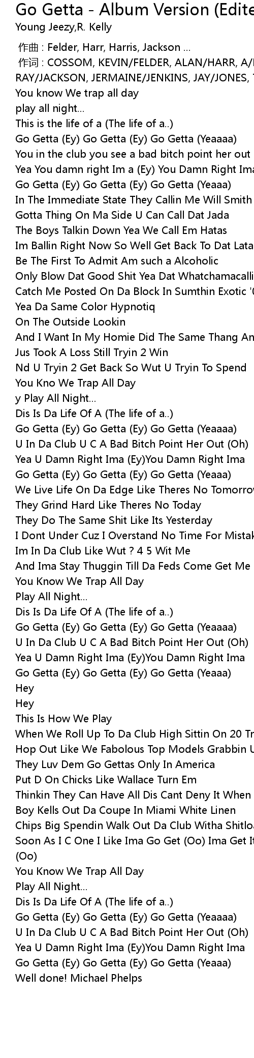 | [02:26.44] | Go Getta Ey Go Getta Ey Go Getta Yeaaa |