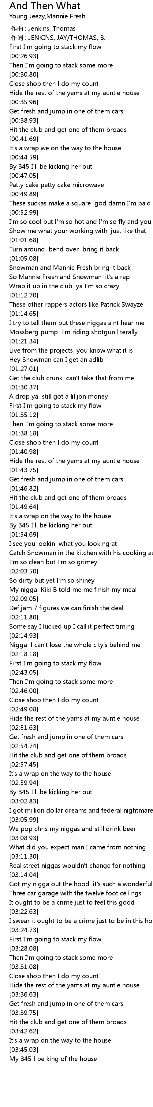 | [01:41.62] | Hide the rest of the yams at my auntie house |